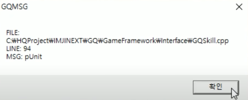 에러 메세지를 보면 GQSkill 이라는 부분 라인 94라는 부분과