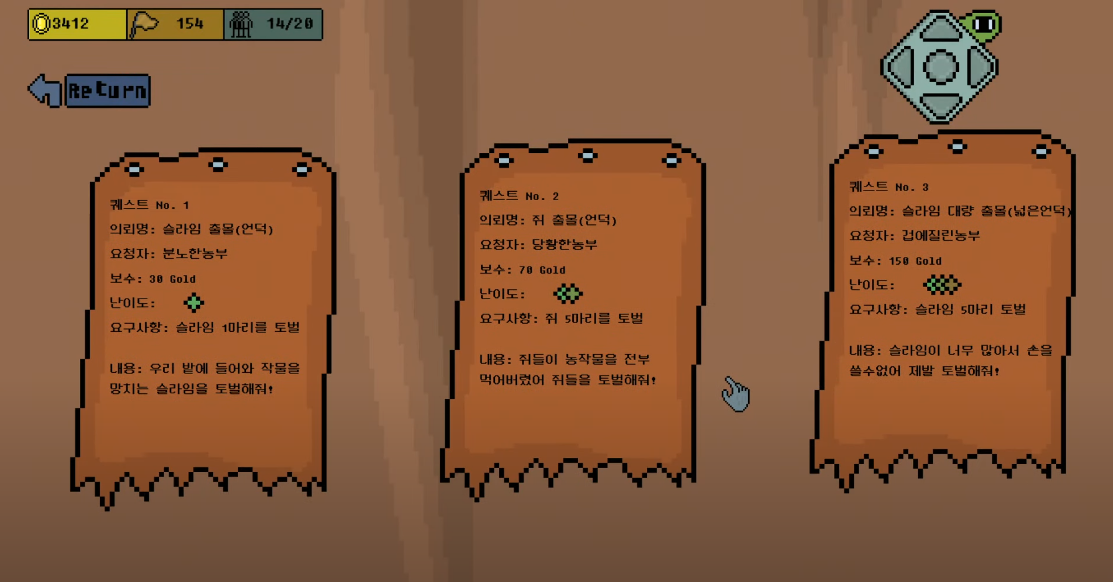 마을에서는 기본적인 게임사이클 메뉴들이 전부 모여있는 형태이며