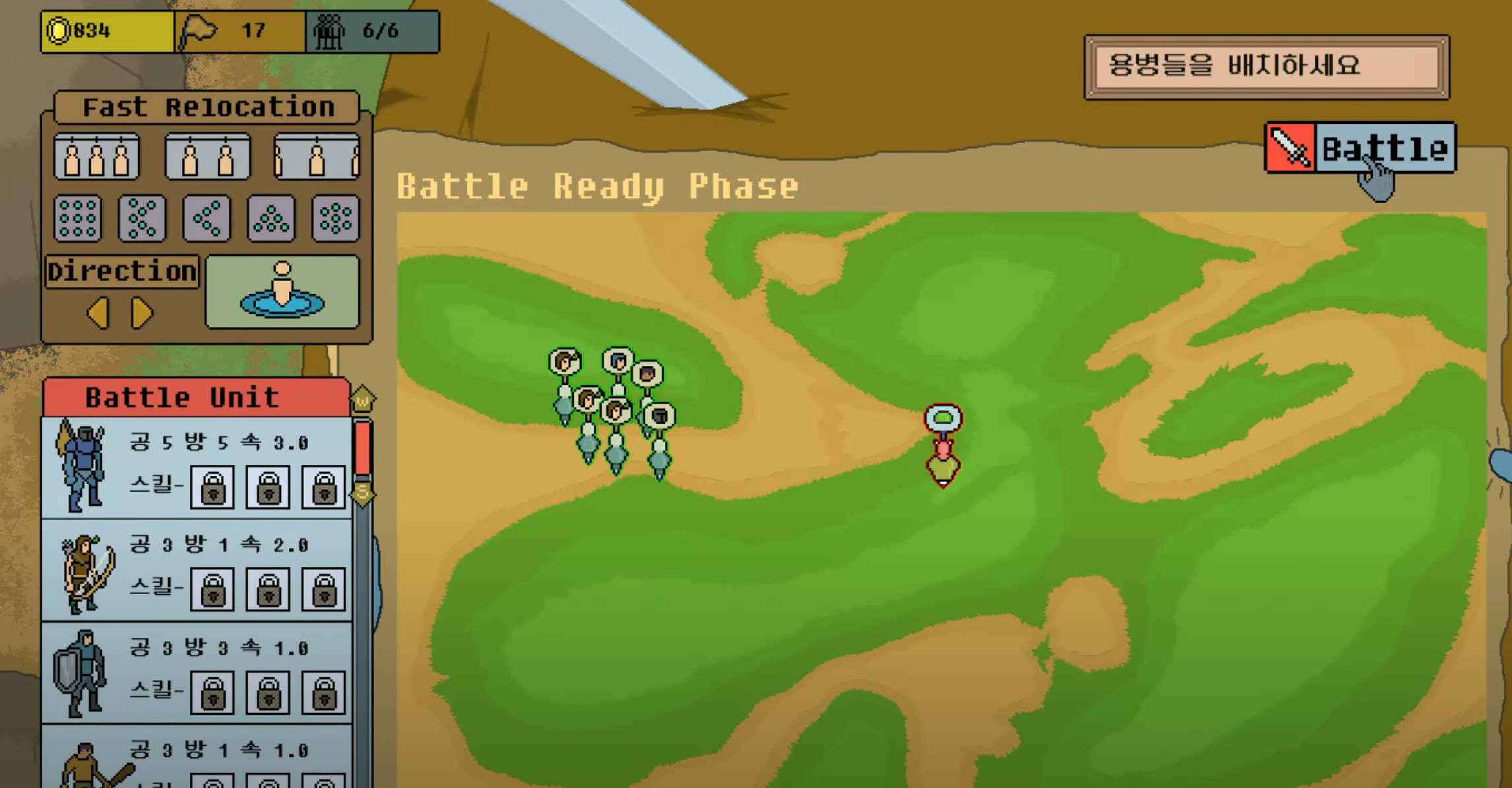방향등을 결정하여 마우스 기준으로 부대를 세팅할 수 있지만 몹시 불편하기 때문에