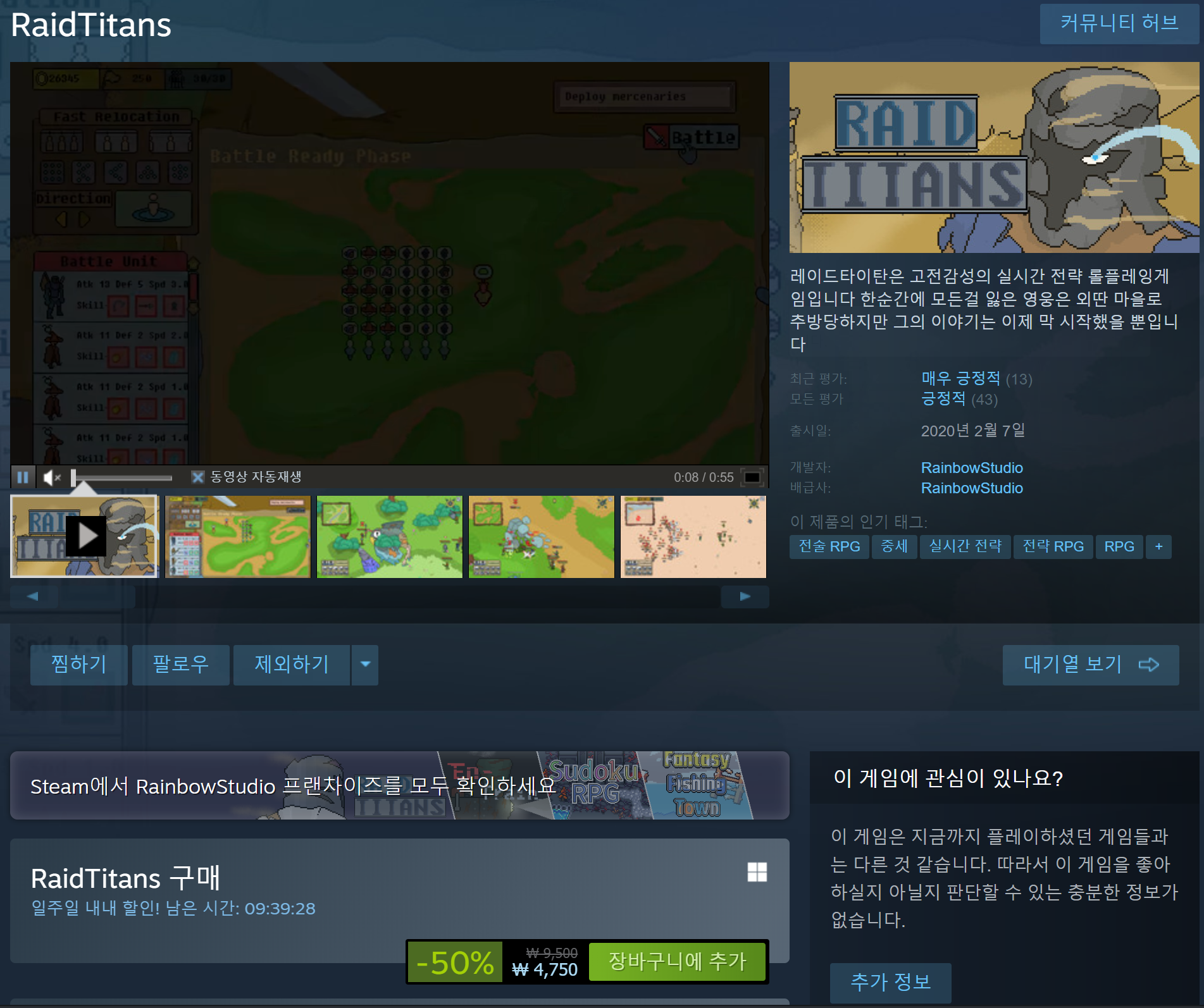 인디 실시간 전략 롤플레잉 게임으로 레인보우 스튜디오에서 개발한