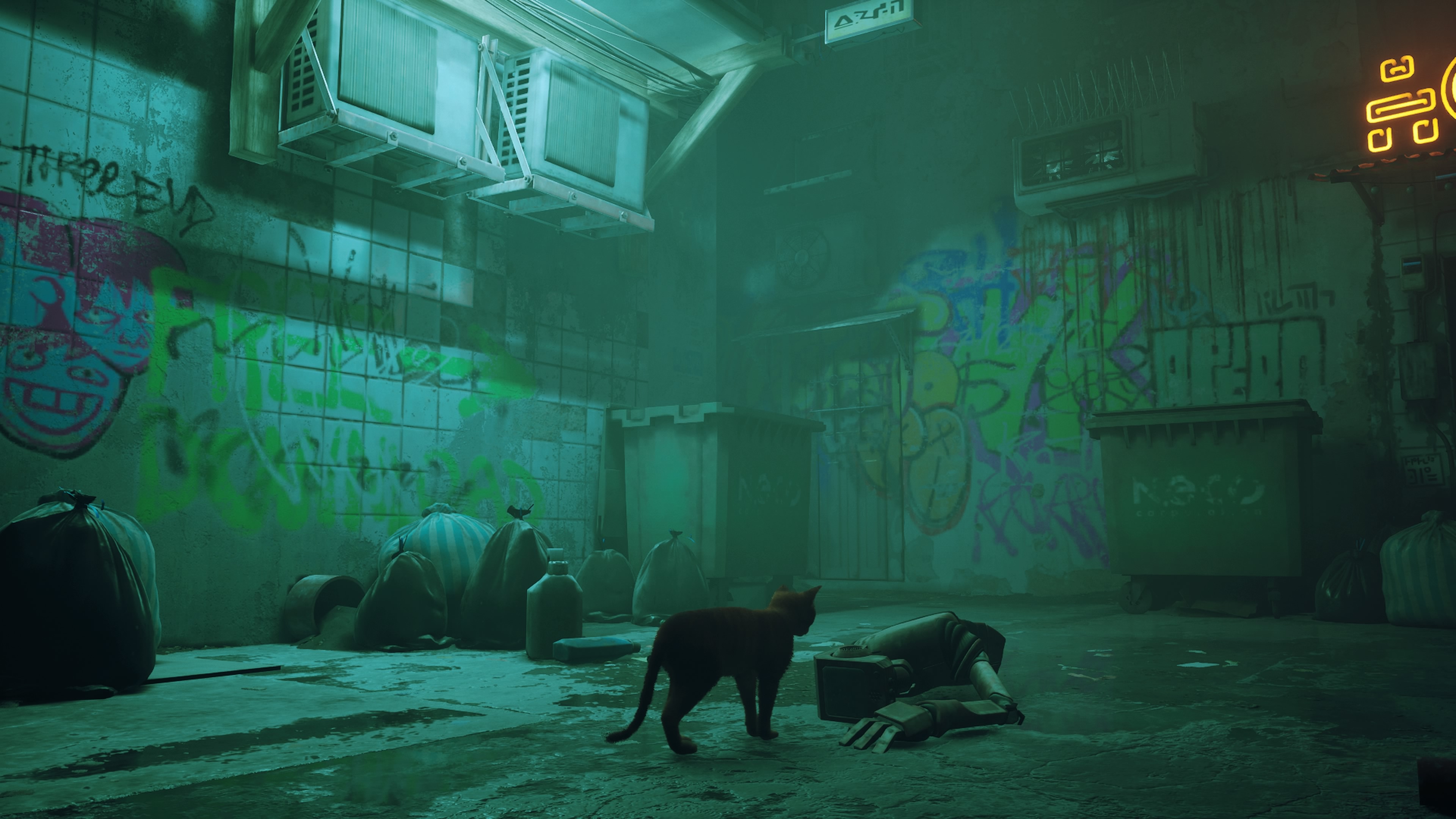 3인칭 고양이 어드벤처 게임과 로봇들이 살고 있는 사이버펑크 풍의