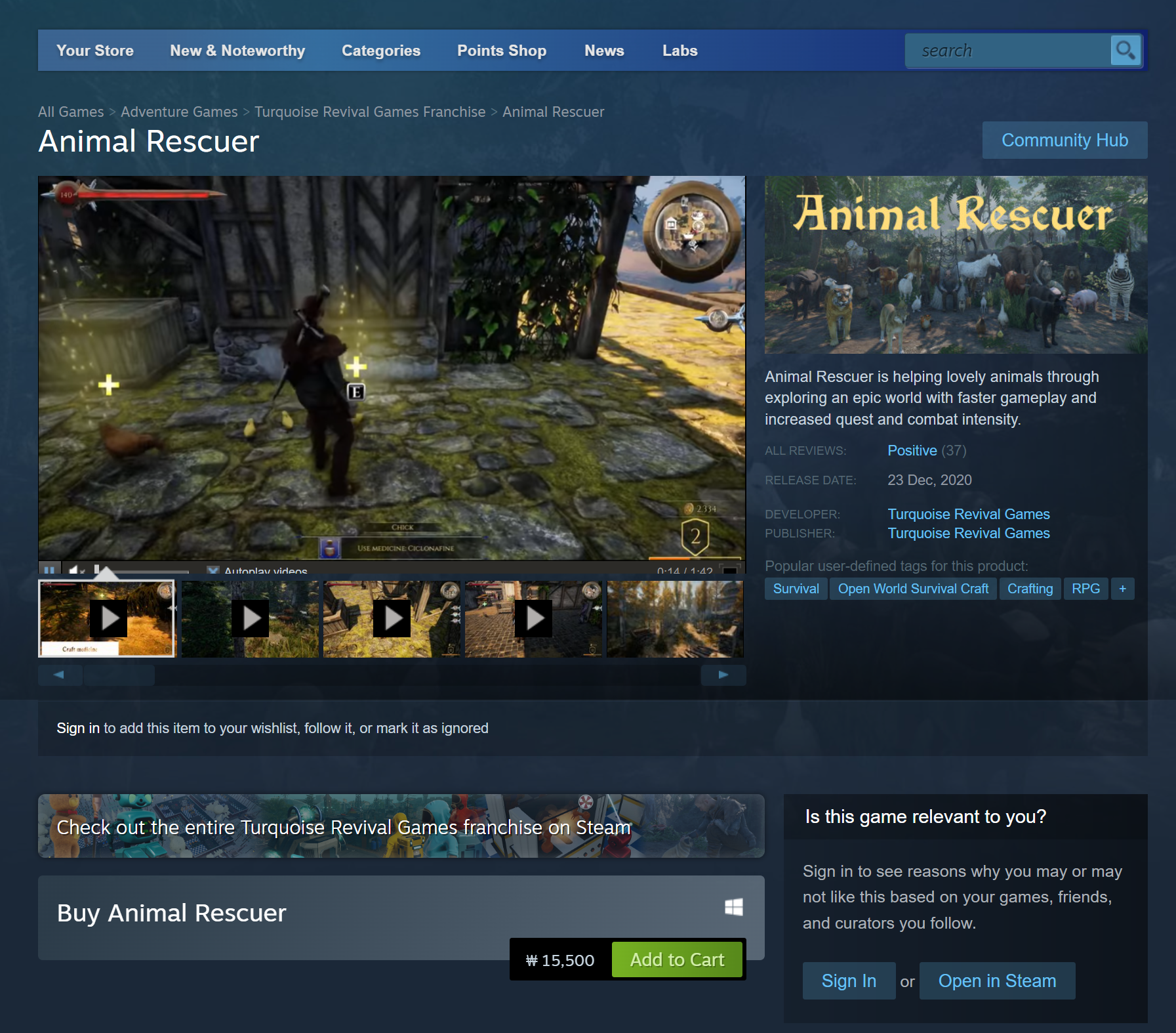 2020년 12월23일 스팀으로 출시한 애니멀레스큐어라는 이 게임은
