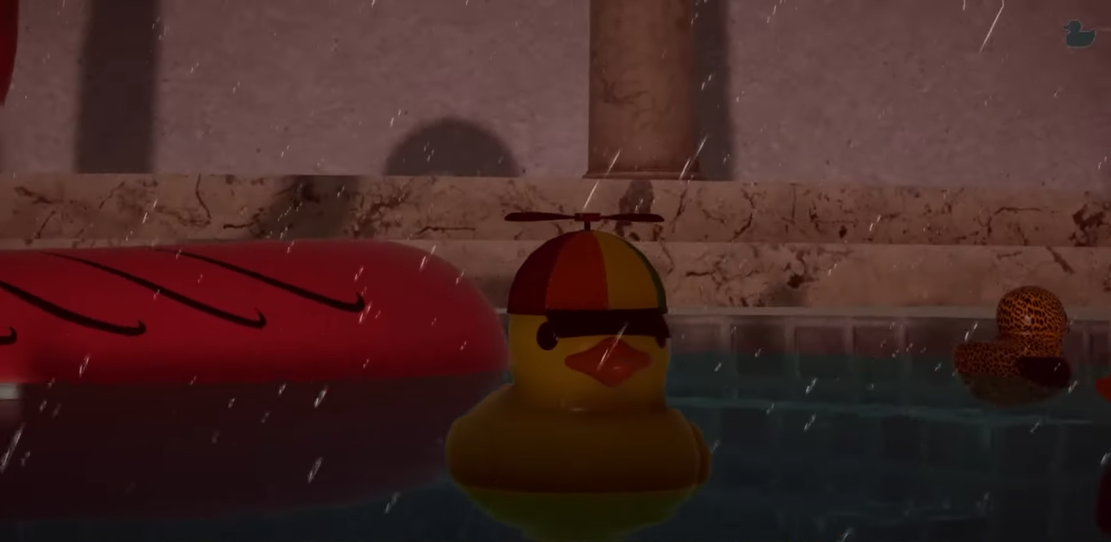 머리에 프로펠러가 있다던가, 불에 타고 있는 러버덕 또는 돌로되어 물에 잠기는