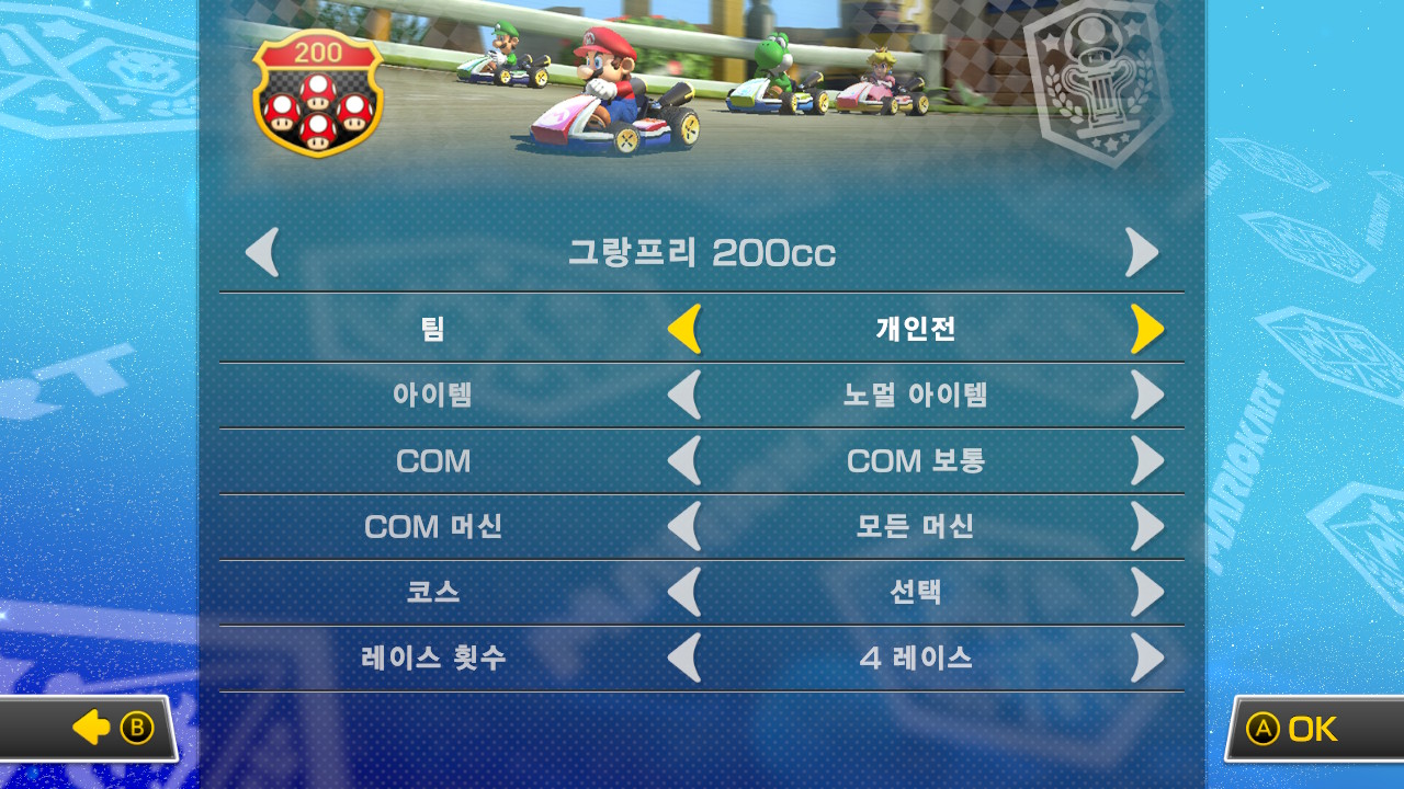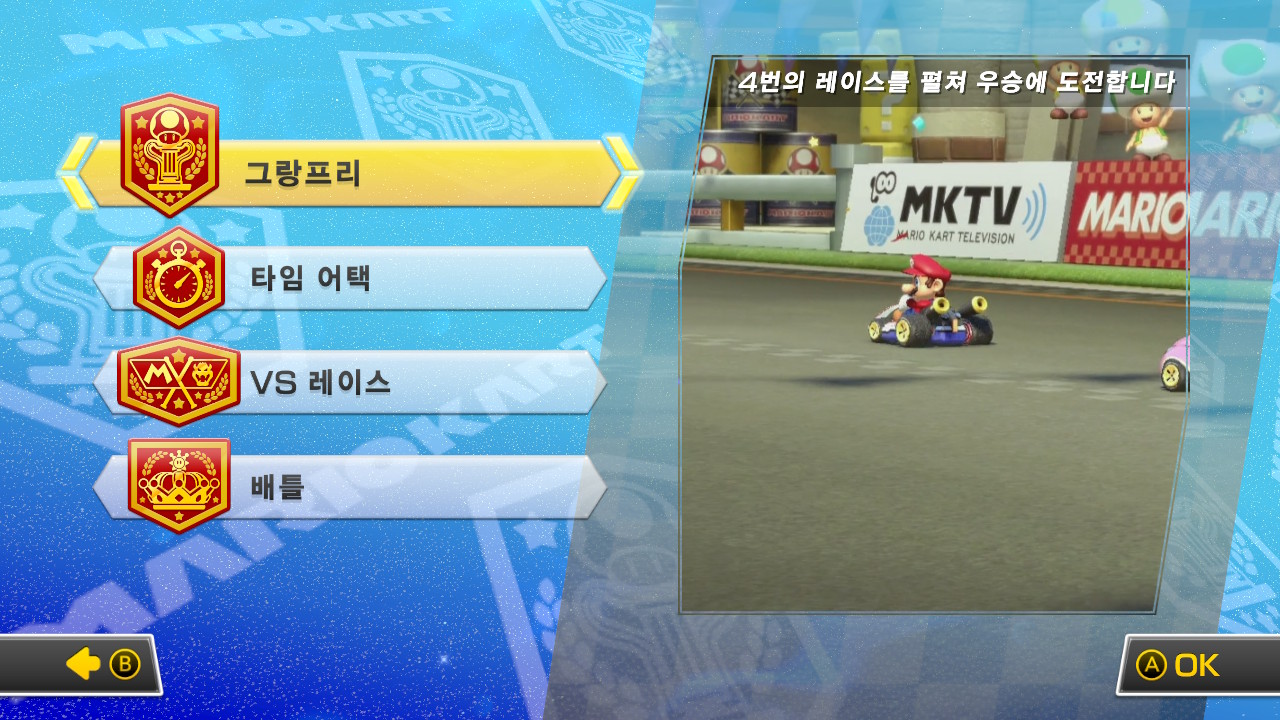 그랑프리의 경우에는 아쉽게도 모두 아이템전을 기본으로 하고 있습니다.