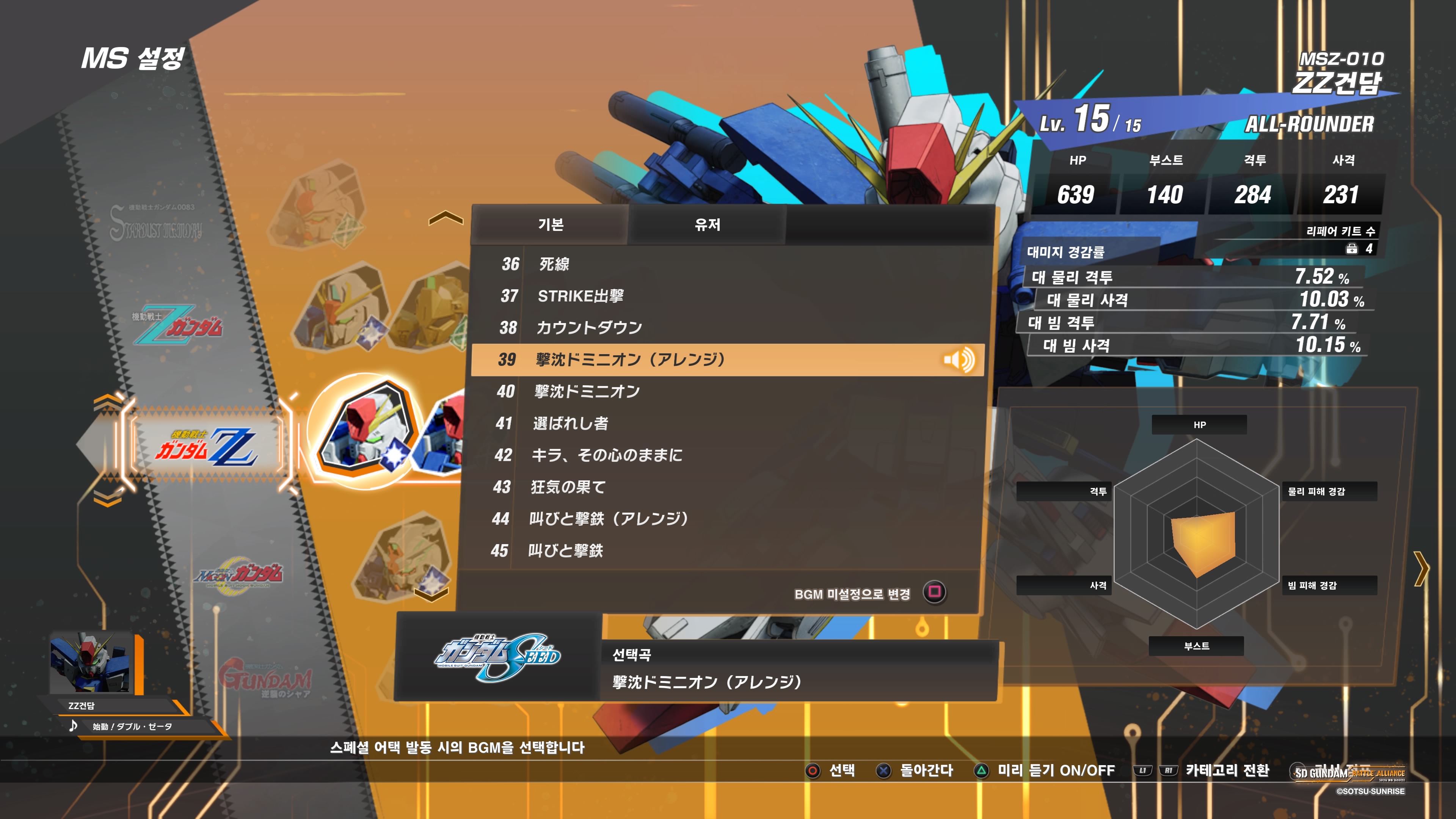 자신이 탑승한 기체가 스페셜 어택시의 BGM을 선택할 수 있다보니