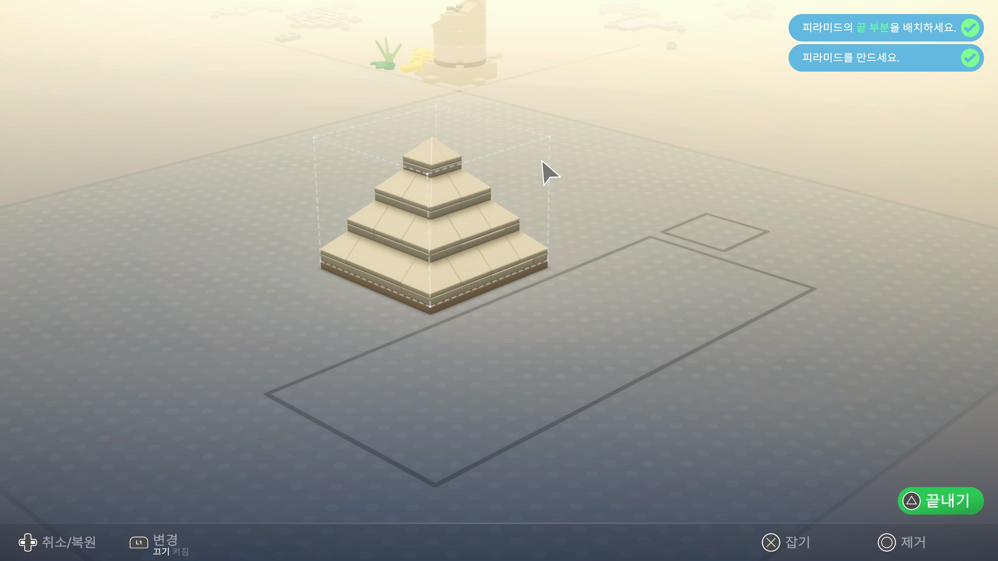 피라미드의 꼭대기만 올려주면 완성입니다.