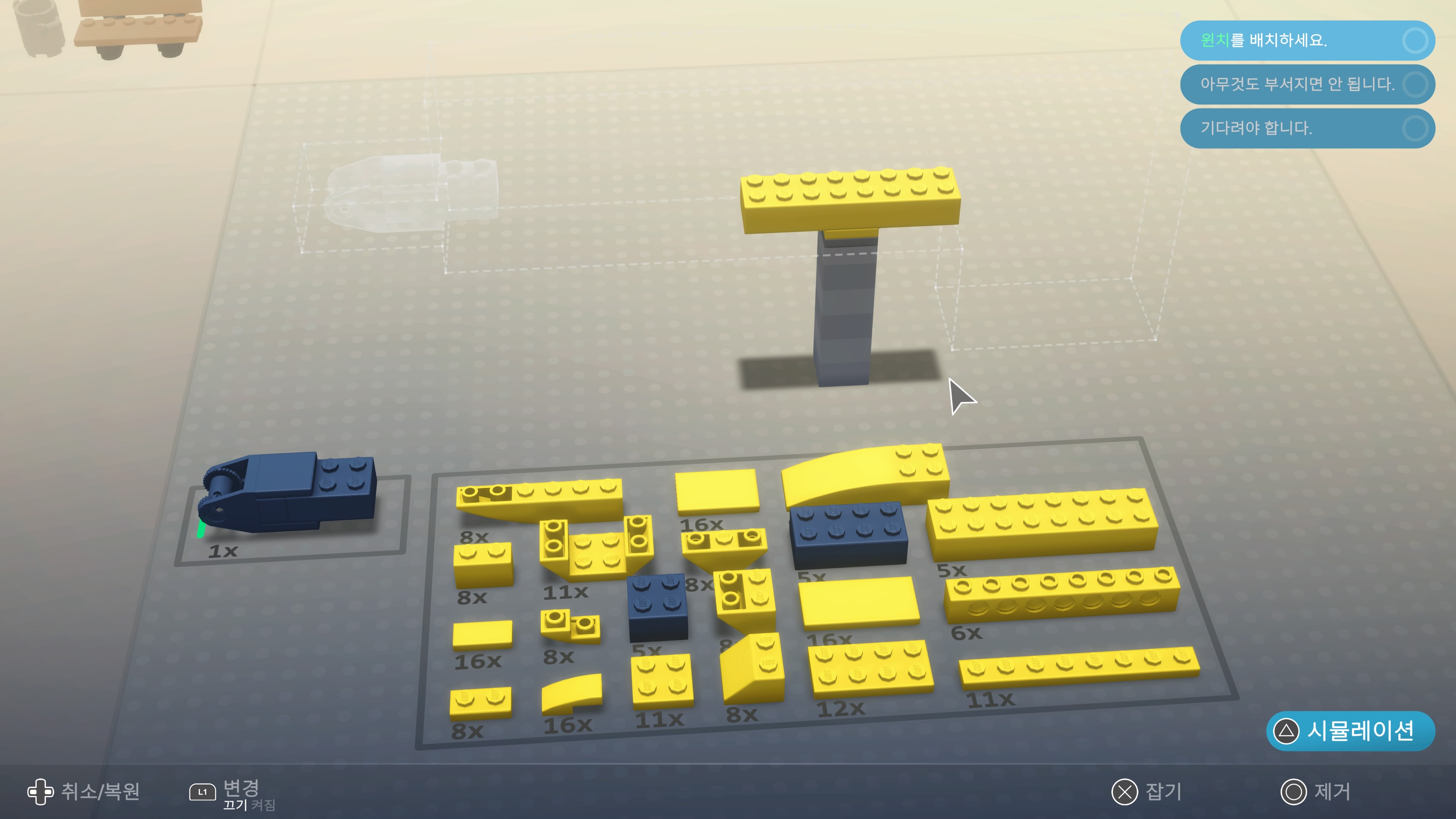 정사각형 남색 브릭을 끼운후에
