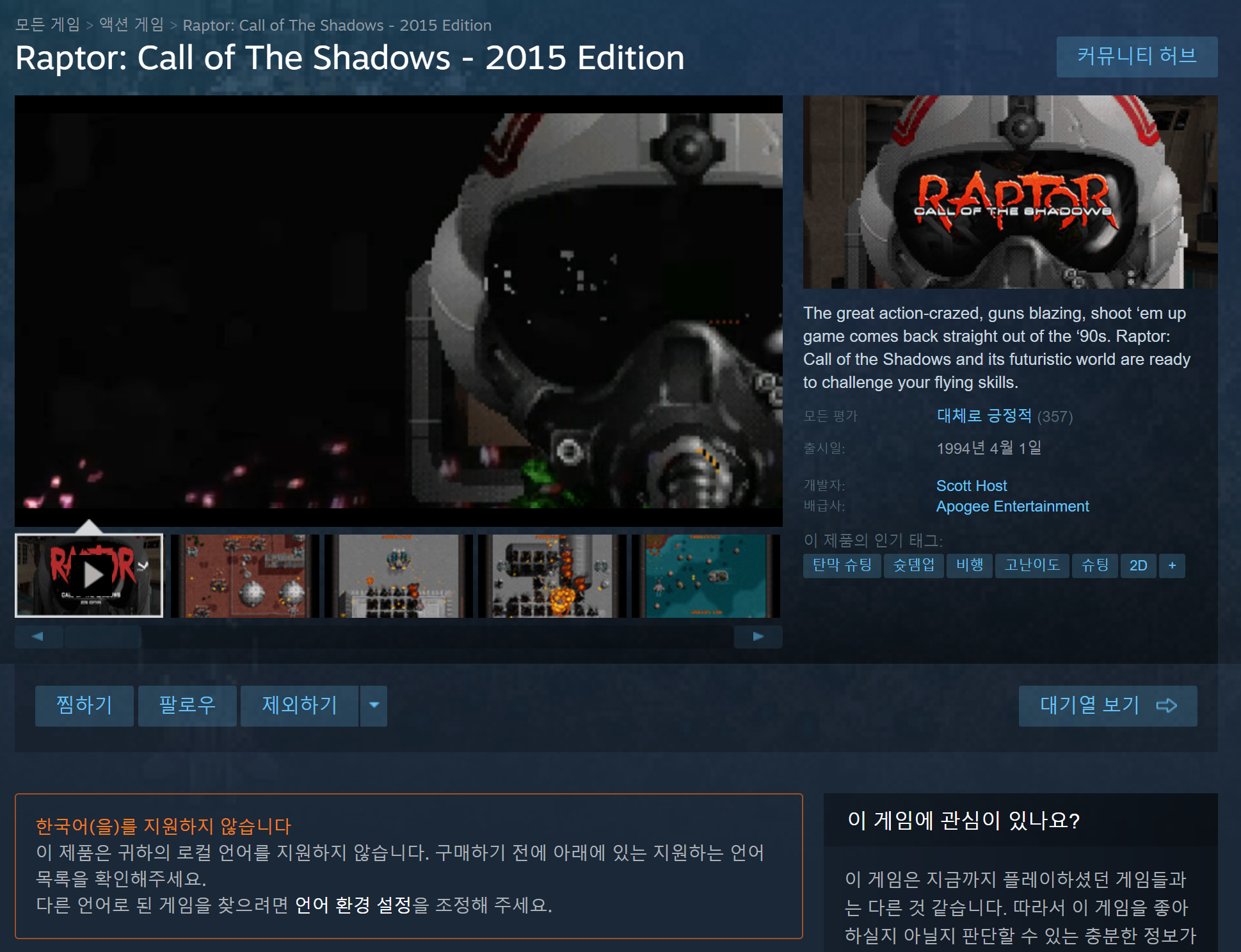 당시만해도 이런 완성도 높은 슈팅게임을 하기위해선