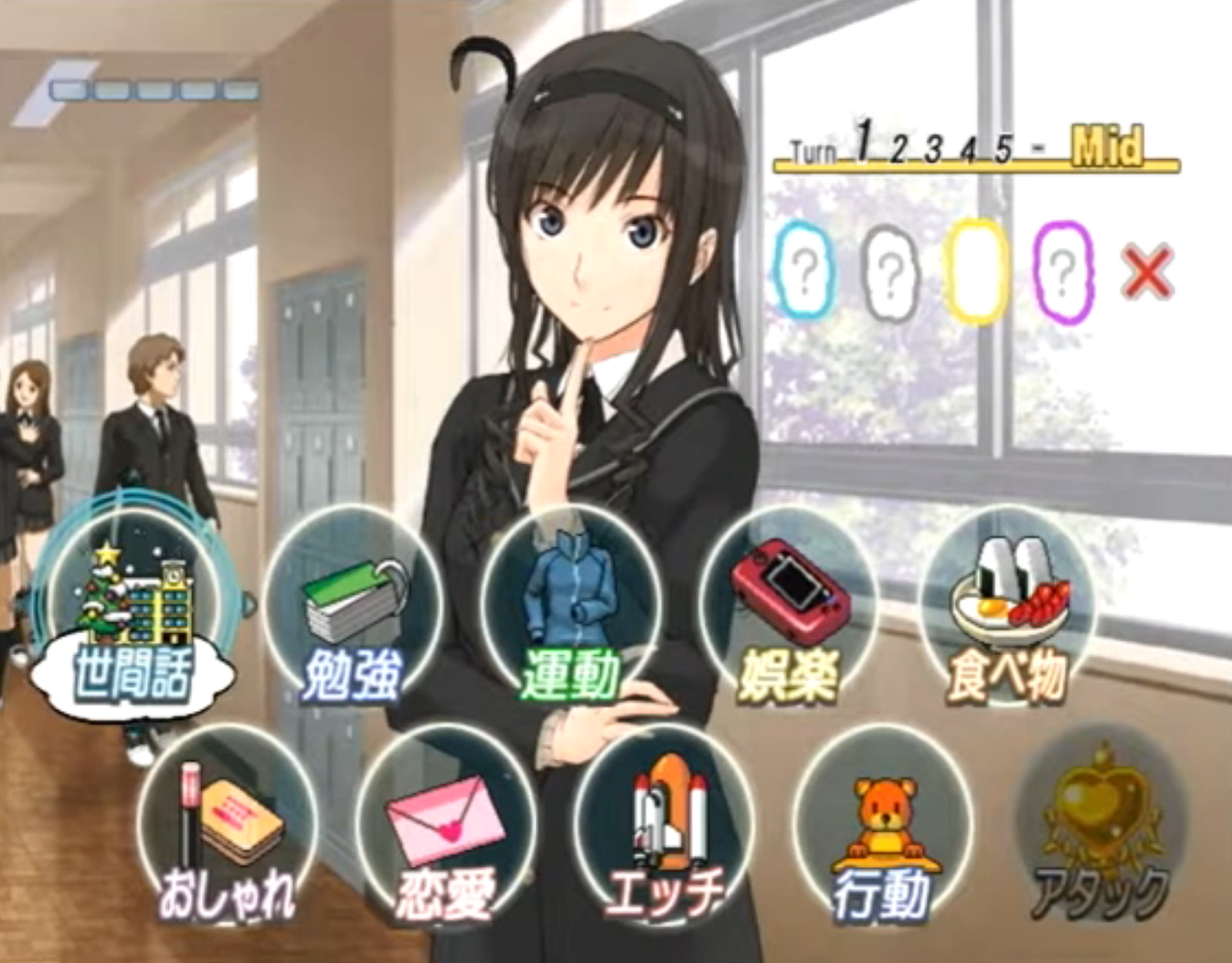 현재 공략대상자와의 관계를 알 수 있는 호감도를 체크하는 부분등이 존재하고