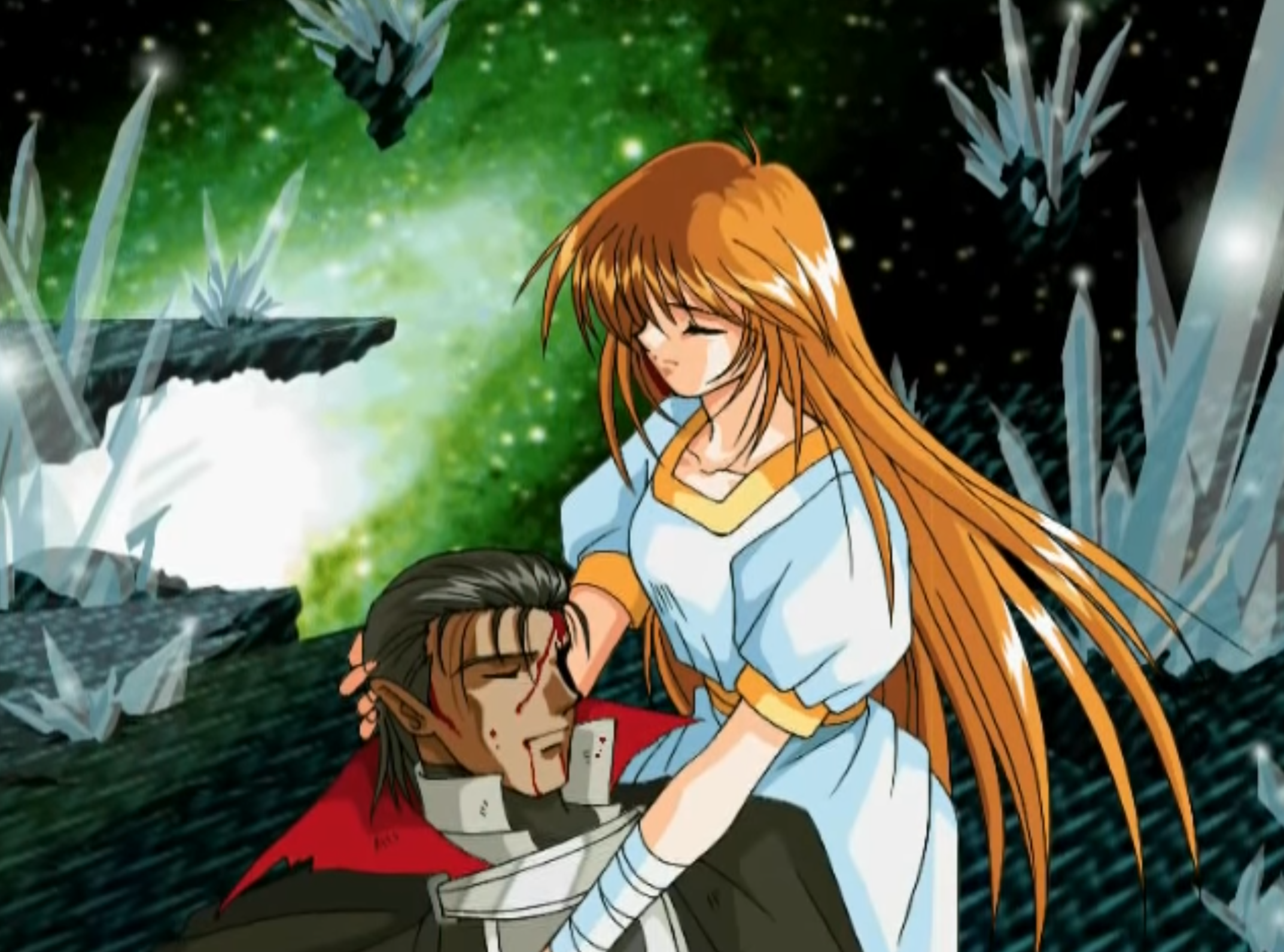 리안이 눈물을 흘리며 레온에게 이별을 이야기 하고 자신을 희생해 일행을