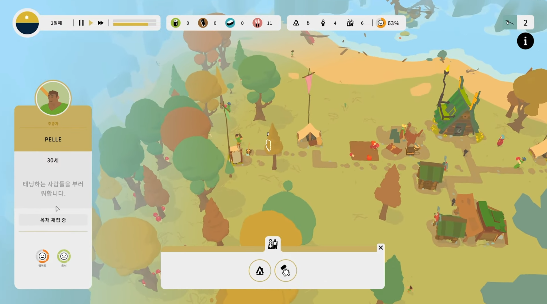 직업이 있는지의 유무, 정착지가 있는지등으로 행복지수가 올라갑니다.
