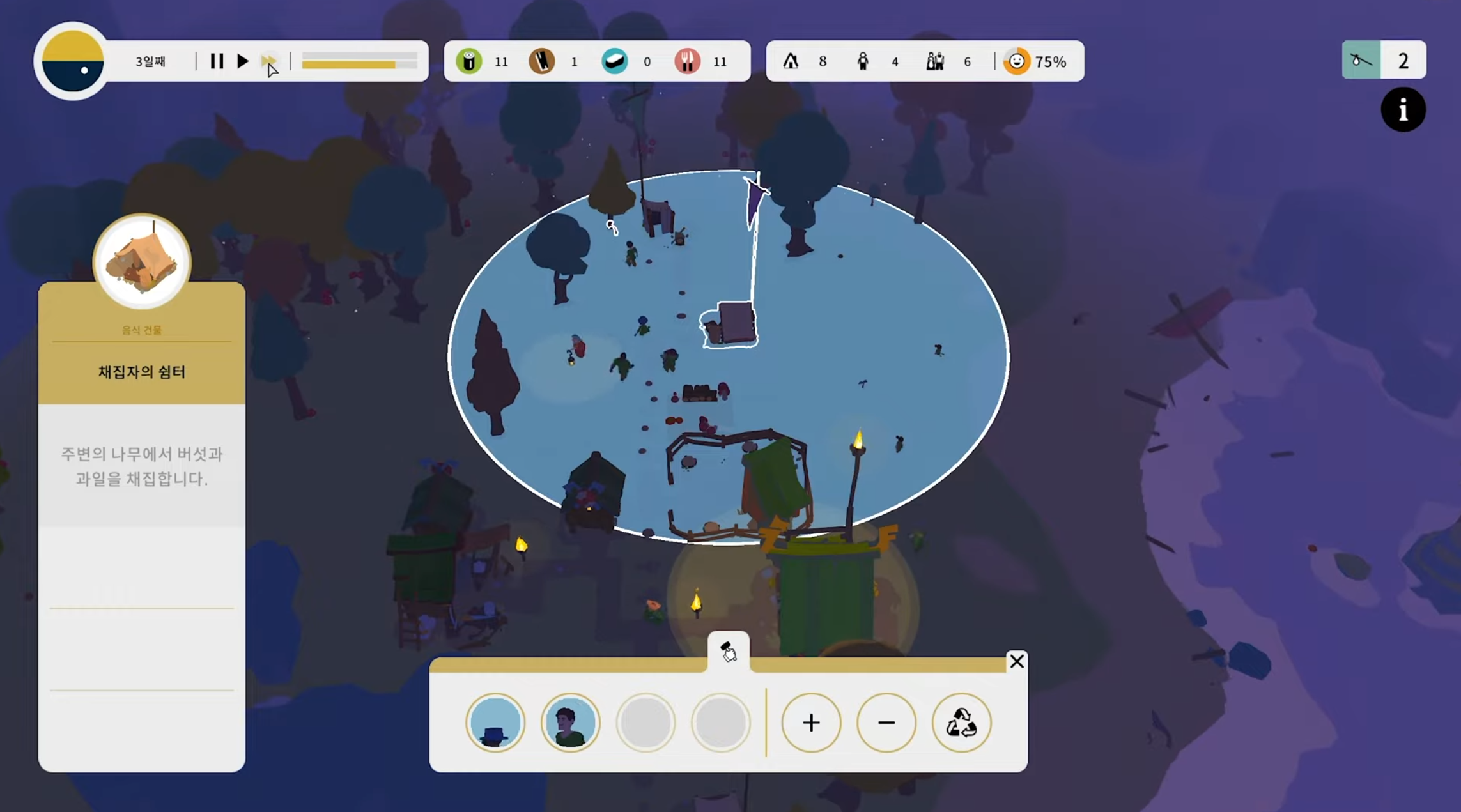 이외에도 여러가지 자원들이 있으며 자원과 인구수, 배고프지 않을 정도와