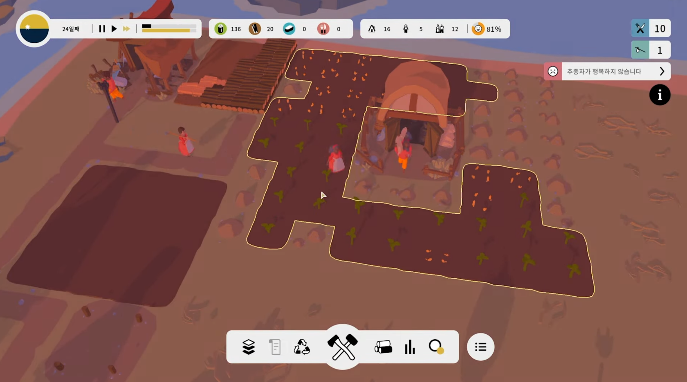 아웃랜더스의 장점으로는 가벼운 마음으로 마을 건설을 할 수 있고