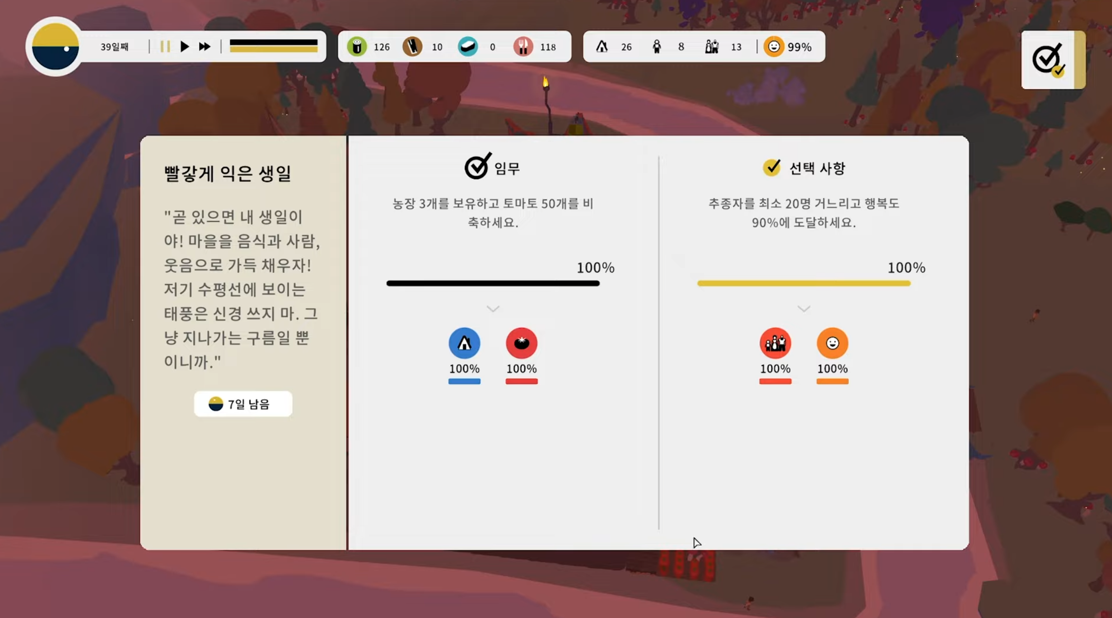 자원관리를 하며 목표를 이루는 게임입니다.