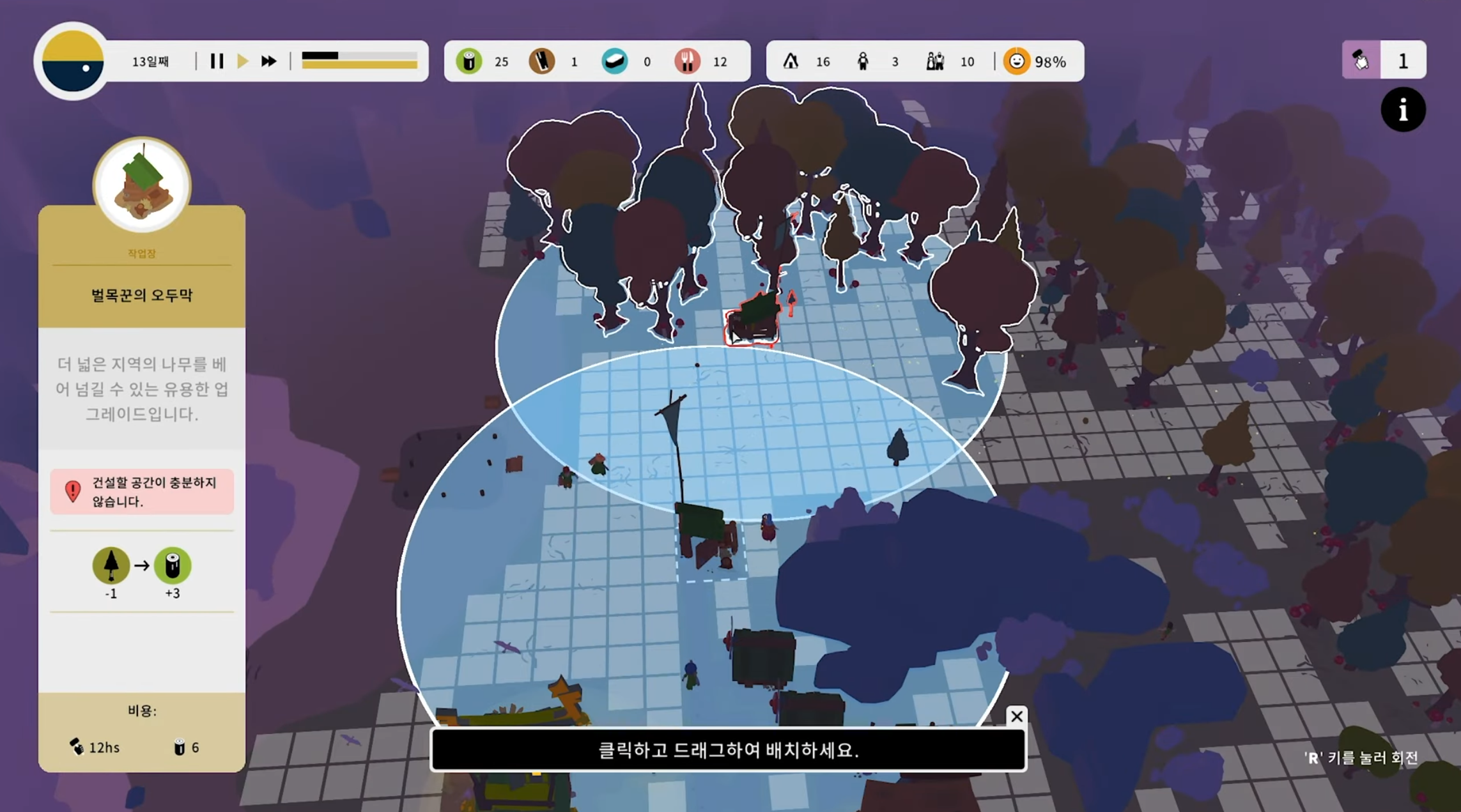 벌목꾼의 오두막을 지어서 나무를 베어낼 수 있으며 제재소를 통해서