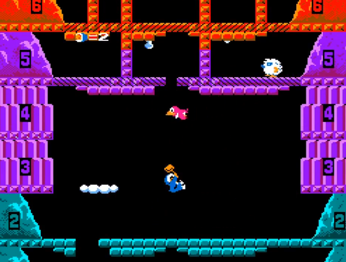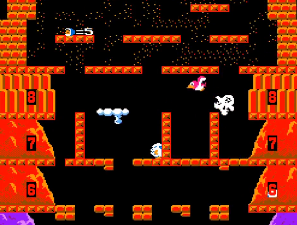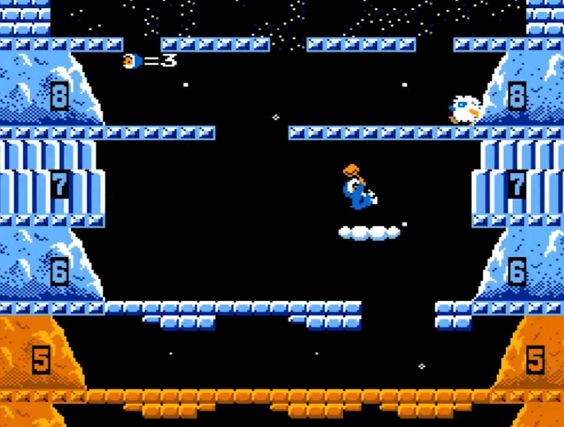 아이스클라이머는 점프로 천장의 얼음을 깨고 점프하여 위로 올라가는 게임이며