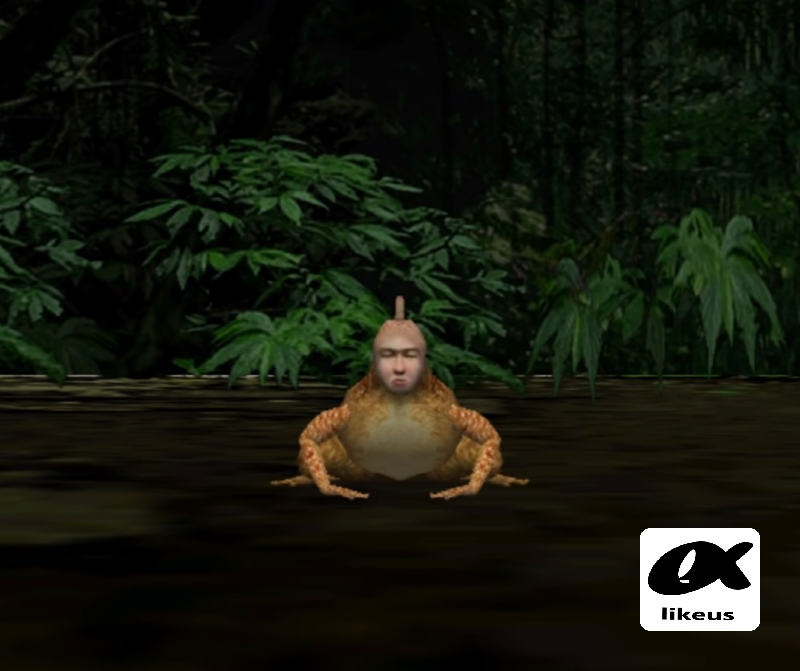개구리 씨맨이 거의 최종단계이지만 물과 마른땅사이에 공존하면서