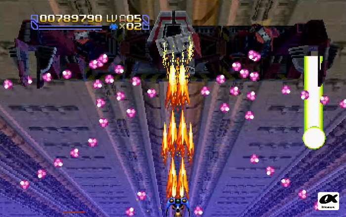점수가 곧 경험치이며 적을 쓰러뜨렸을때 사용한 무기가 파워업해가며 상당히 탄막이 심하더라도