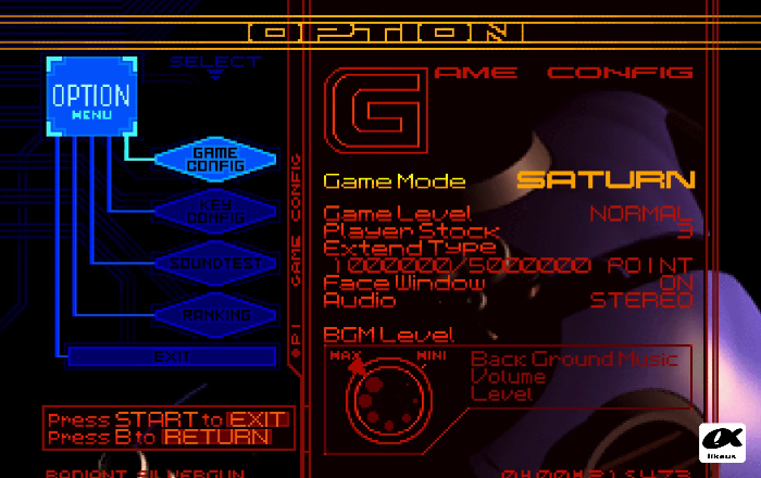 게임의 옵션에 들어가면 게임모드가 아케이드 모드와 새턴 모드가 존재하며