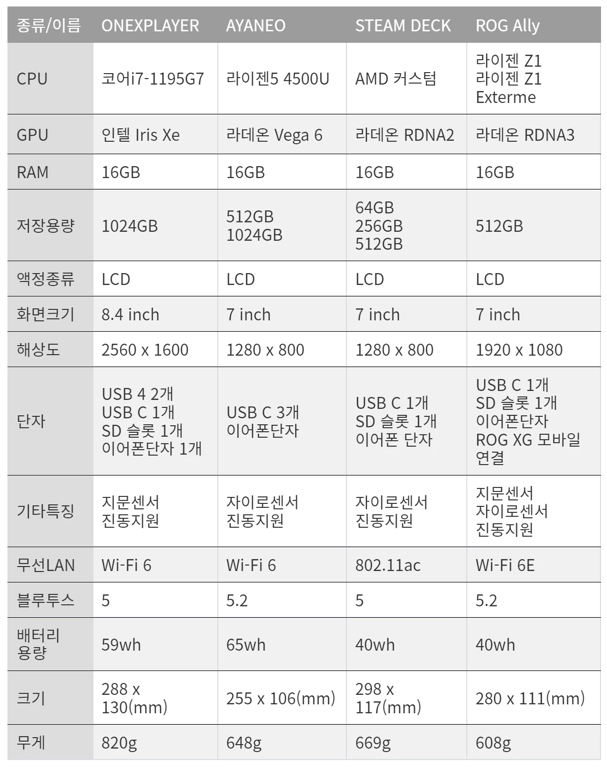 큰 틀에서 보면 비교하게 되는 게이밍 UMPC 4종류