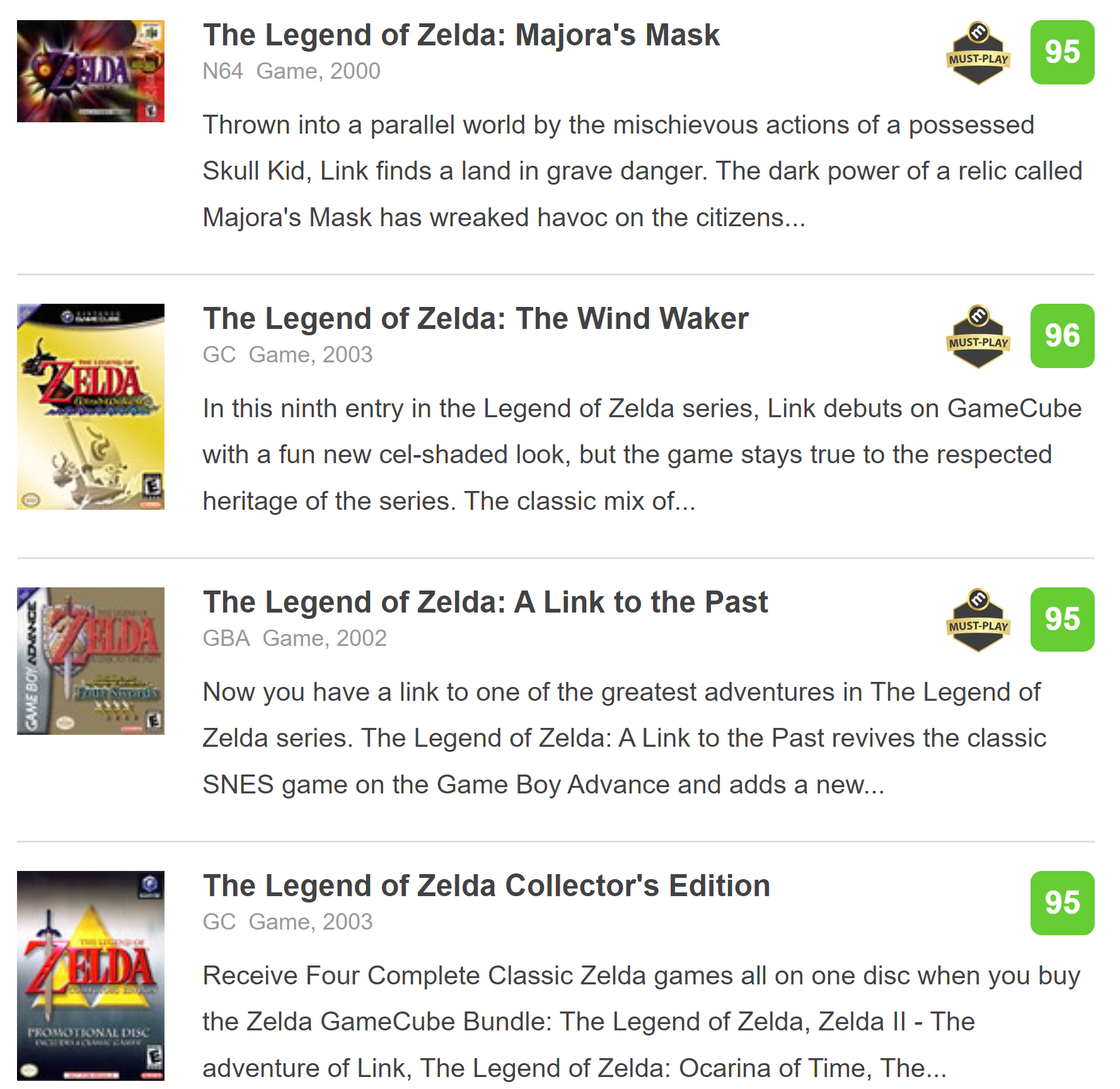 젤다의 전설 평가들에 대해서