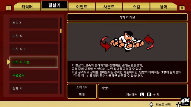 기존 작품에서도 필살기는 다양한편이었지만 다운타운 열혈이야기SP에서는