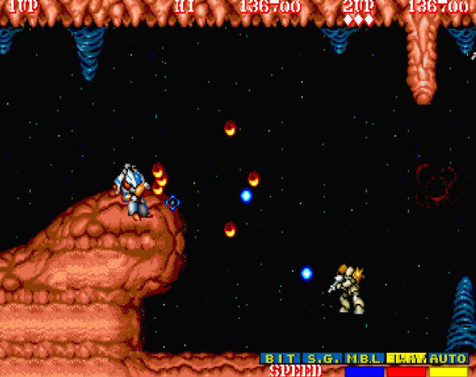 우선 캡콤에서 슈팅게임을 만들었다는 것 자체도 상당히 생소한 느낌이었고 뭔가 디자인이나 비행체에서 로봇으로