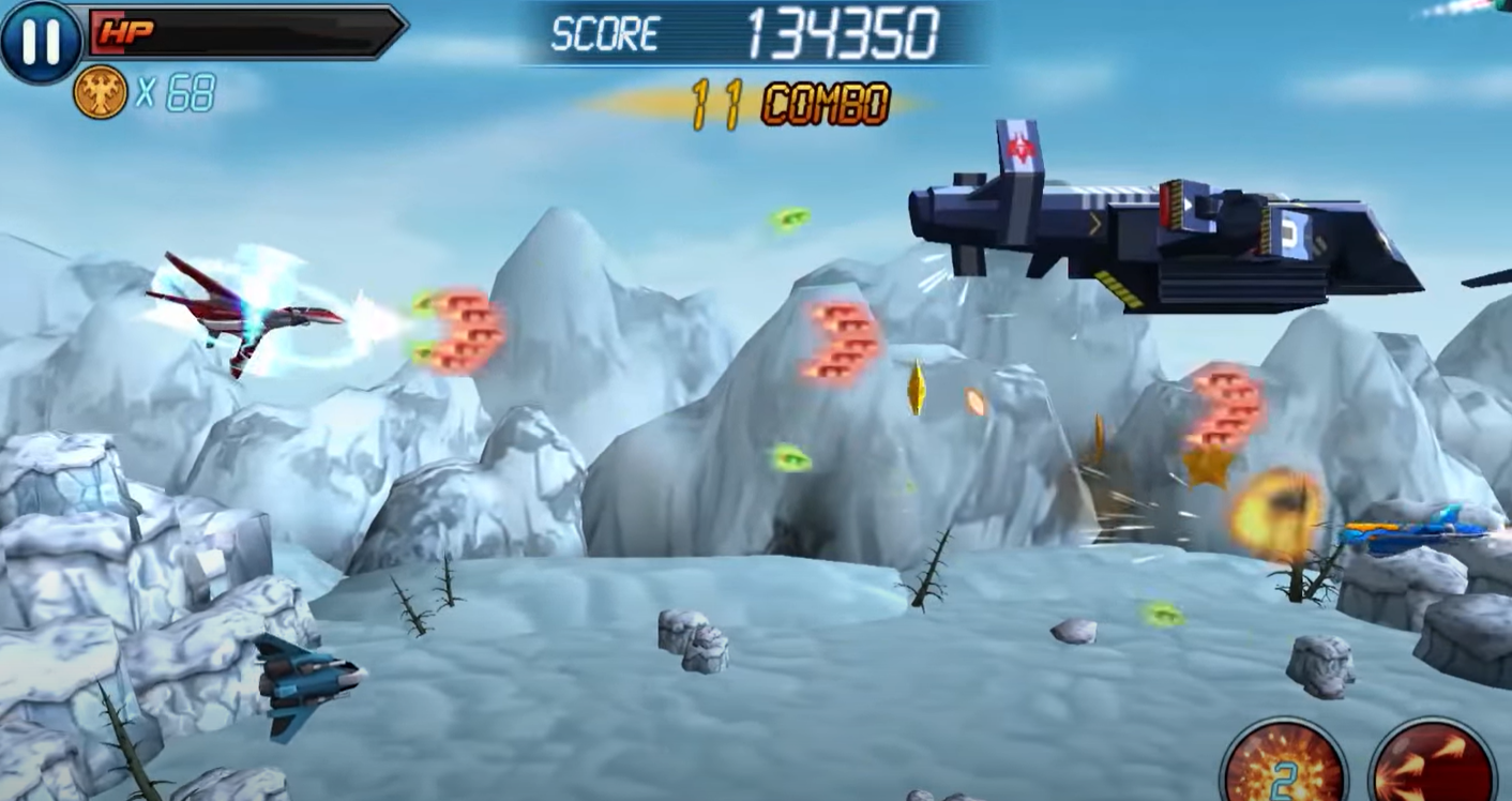 우선 터치조작이 불편하면서 빠른 적의 기체와 총알들을 피하기 위해 화면을 열심히 비벼야하는